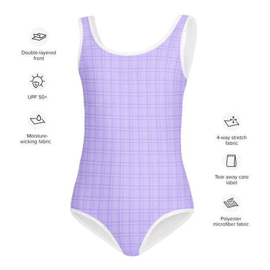Lavender Plaid Kids Swimsuit